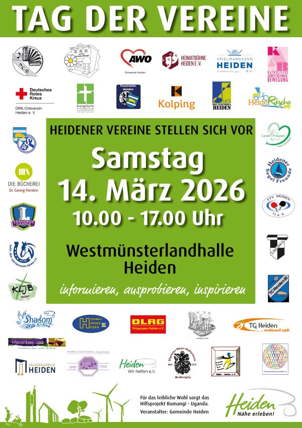 Am 14.03.2026 10.00-17.00 Uhr ist der TC-Heiden beim Tag der Vereine in der Westmünsterlandhalle.